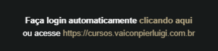 PASSO 2: Nesse e-mail você vai encontrar o seu login e senha para acesso ao curso, e também um link de acesso direto para entrar na plataforma, como mostra na imagem abaixo: